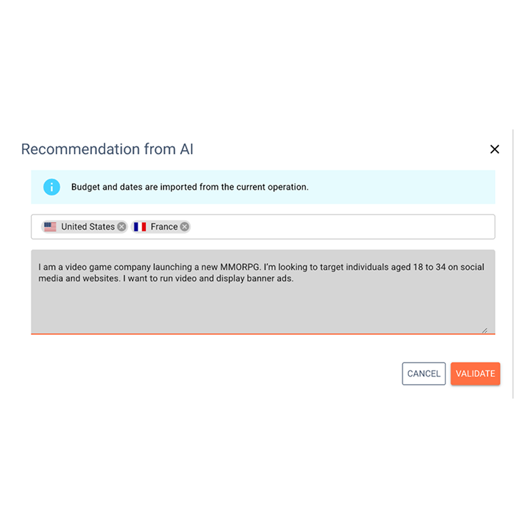 Generate an initial media plan and structure using a simple prompt, thanks to our recommendation mode.